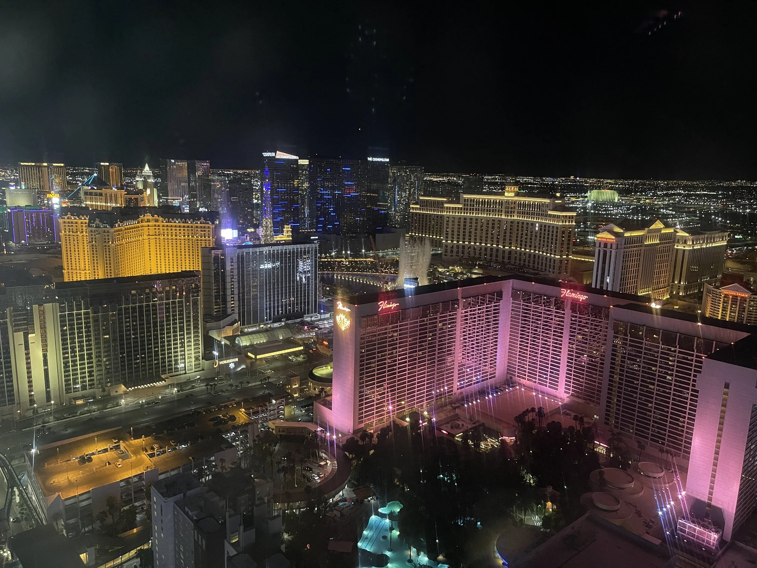 I guess this wheel is taller than the London Eye. People recommend going up at night to get a view of the Vegas lights. The new sphere was lit but during the ride it was just a U2 ad vs the more clever animations that they were showing at other times.
