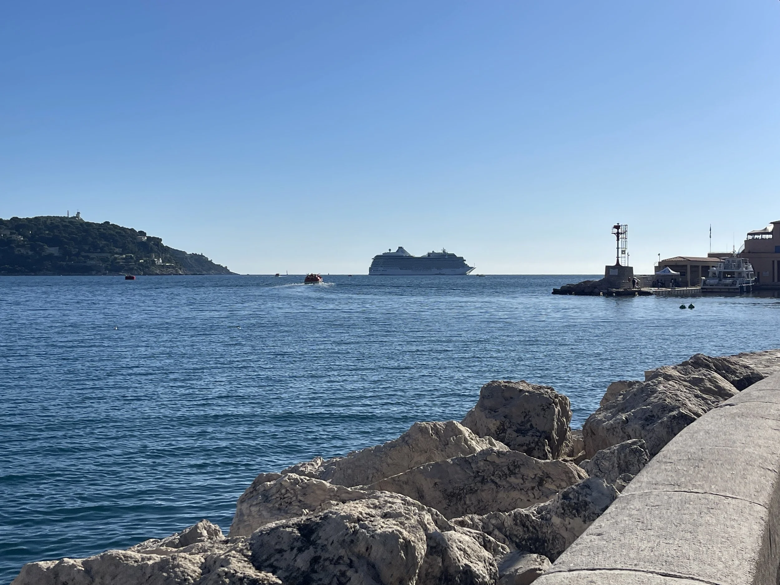 We had time to grab one more drink before taking the train back to Nice. This was a nice place with a great view of the harbor. France is very dog friendly and everyone seems to have a perfectly behaved medium sized dog. You could tell the dog above is a regular at this place.