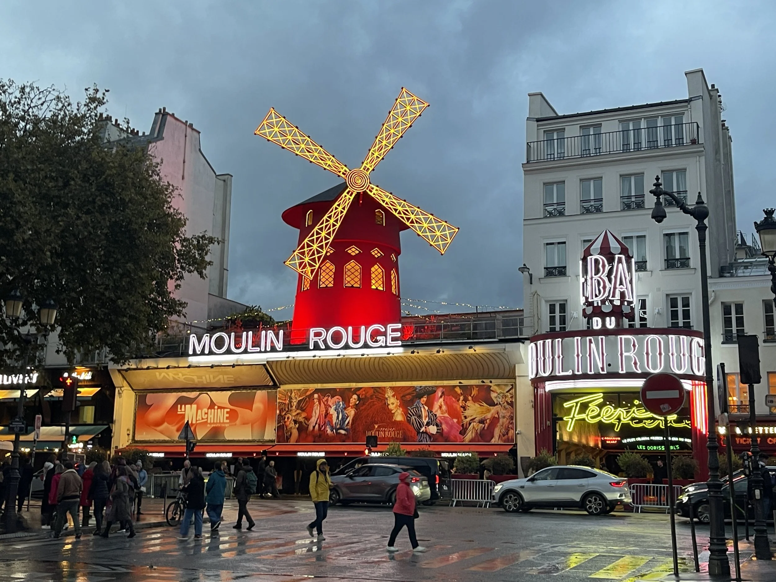 If you walk along an alley behind the Moulin Rouge, you get to this little gem of a bar. You can access the rear of the famous windmill and drink there. Being that it was a little cold and wet that night, that part of the bar was not heavily used. Just downstairs is the inside portion of the bar which was pretty lively with people coming here after the workday.