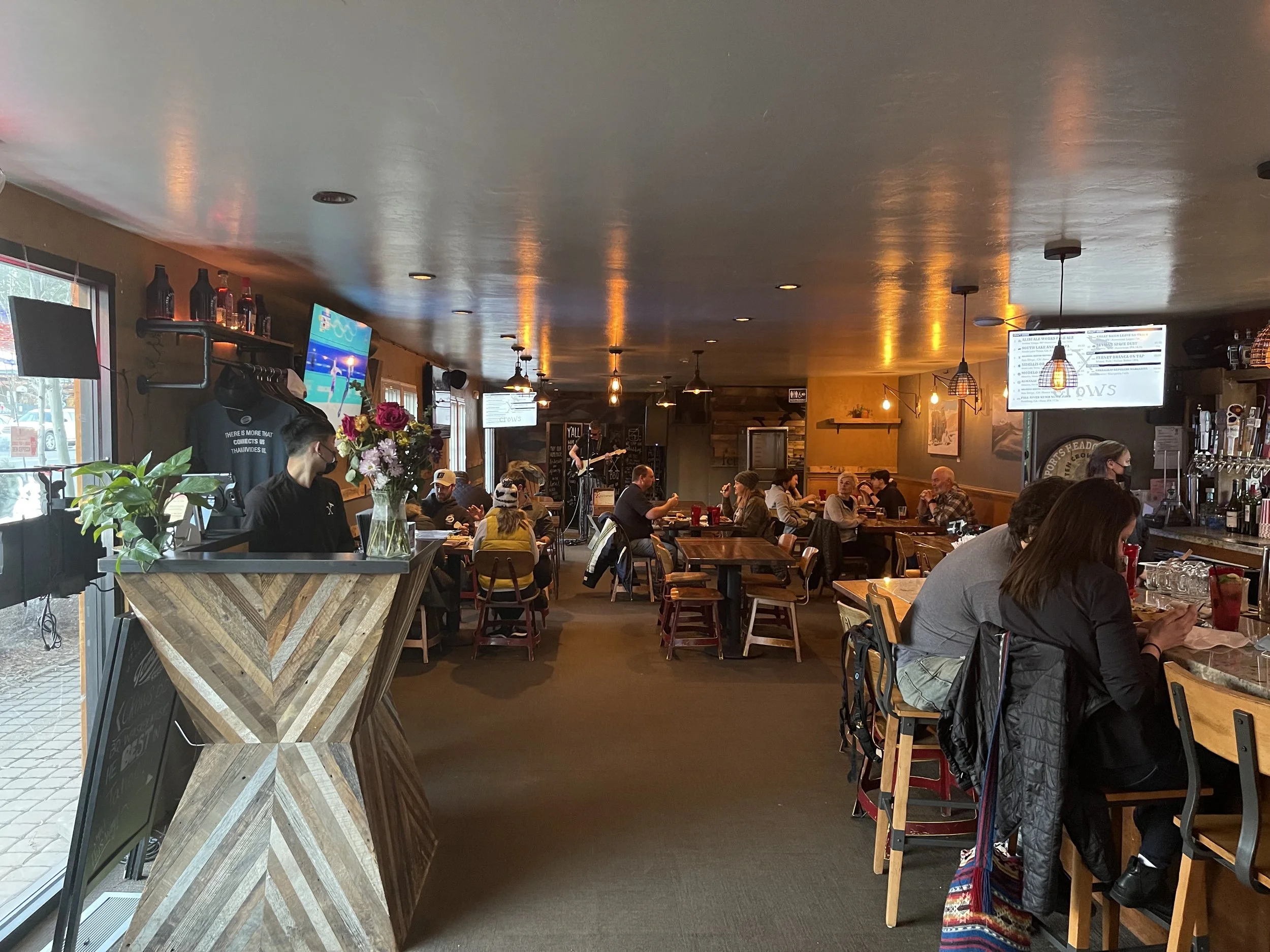 Ten Crows sits catty-corner from the super busy Heavenly Village corner on 50 inside the Hotel Becket. One of the reasons I like this place is that they have this tented outside area where I can hang with my pooch and be warm in the winter since they have heat lamps - so it’s like outside but feels like inside. In the summer they have additional seating outside on picnic tables. They often have live music inside.